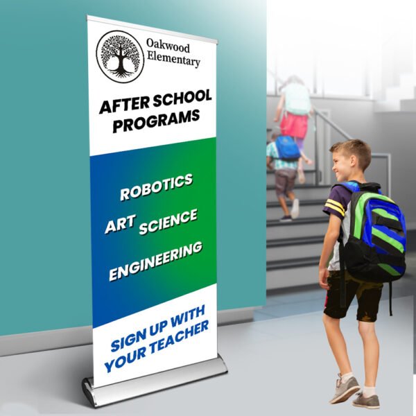 Our wide retractable banner has extra room on the sides. It’s perfect for clients who need a bigger alternative to our regular premium pull up banners.